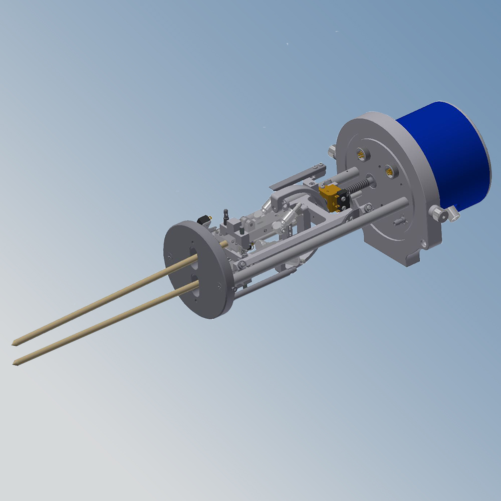 • Einfache Bedienung durch fixe Aufhängung an dem Flansch der Vakuum-Kammer und durch das Zustell-Rad für die Taster Finger.
